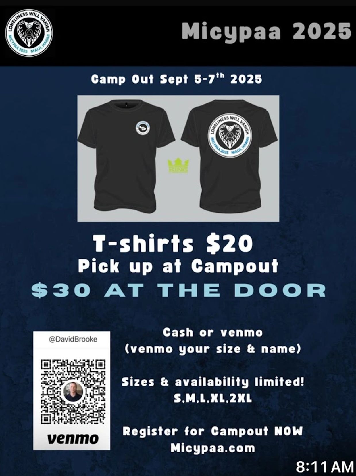 T-SHIRTS ARE AVAILABLE FOR PRE-SALE FOR $20ea BEFORE THE EVENT STARTS